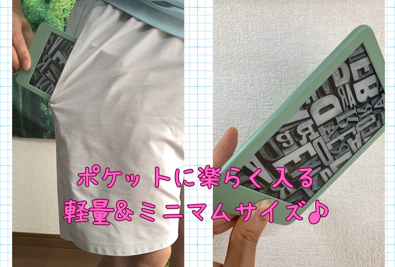 ハーフパンツのポケットに入れて部屋を移動できるので、ちょっとしたスキマ時間もすぐに読書モード。